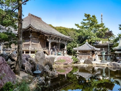 白鳳年間の創建と伝えられ「阿波の法隆寺」とも呼ばれる名刹。室町期建立の三門、本堂、観音堂、聖観音坐像は国の重要文化財に指定
